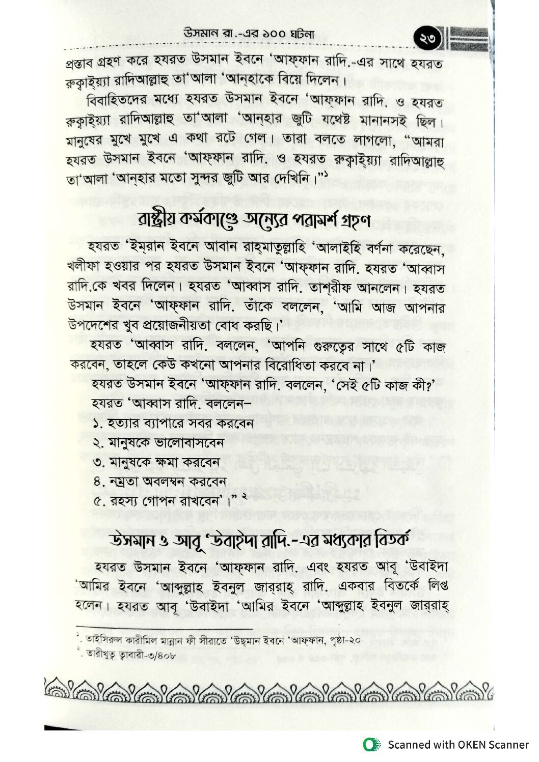 তৃতীয় খলিফা হিসেবে উসমান গনি রাদিয়াল্লাহু তা’আলা আনহু কোরআন সংকলন ও তার প্রচার নিয়ে কাজ করেন, যা আজকের মোসাহেফের ভিত্তি স্থাপন করে। তার প্রশাসনিক দক্ষতা এবং উন্নয়নের পরিকল্পনা তাকে ইতিহাসের এক অনুকরণীয় নেতা করে তুলে।