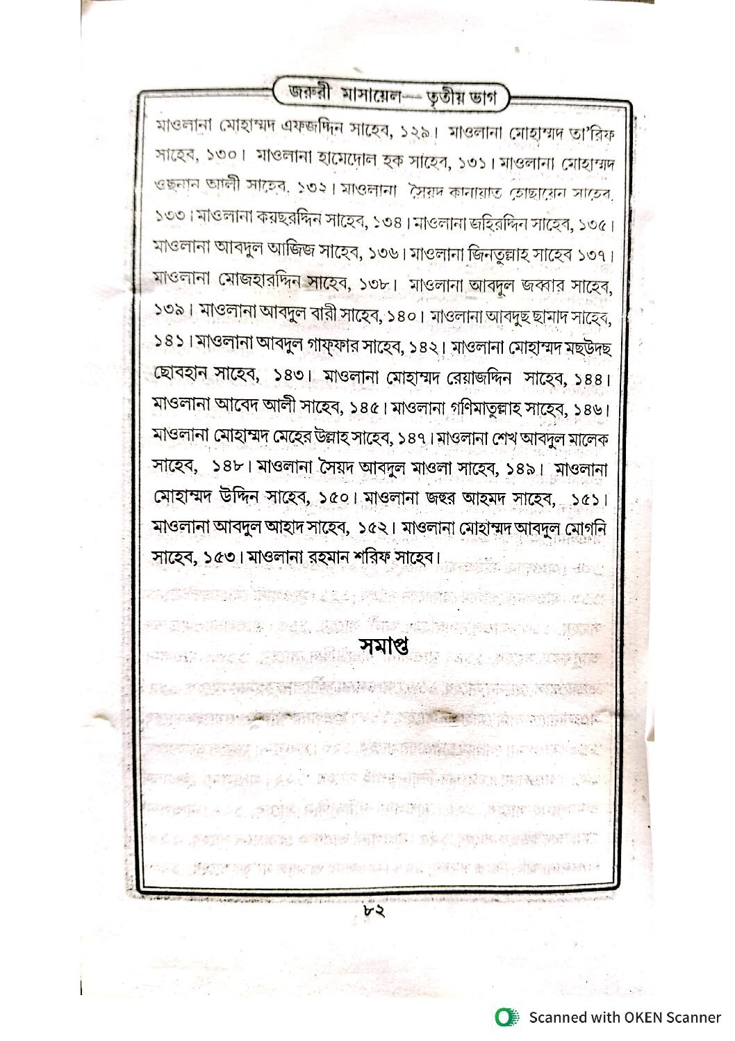 চলমান জীবনের নানা গুরুত্বপূর্ণ সময়ে জরুরী মাসায়েল আপনাকে দিক নির্দেশনা দেবে। এটি পড়া খুবই সহজ ও যেকোনো বয়সের পাঠকের জন্য যথাযথ। একটি ঐতিহ্যবাহী আঙ্গিকে এটি তৈরি করা হলেও এতে আধুনিক জীবনের প্রয়োজনীয় বিষয়গুলো অন্তর্ভুক্ত করা হয়েছে।