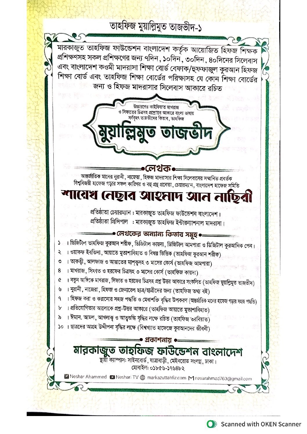 তাহফিজ মুয়ালিমুত তাজভীদ একটি সম্পূর্ণ সহজ-সরল, কিন্তু কার্যকরী গাইড যা আপনাকে কুরআন পাঠের তাজভীদ নিয়ম শিখতে সাহায্য করবে। এটি বিশেষ করে নবীন শিক্ষার্থী এবং ইসলামিক শিক্ষা অর্জনে আগ্রহীদের জন্য ডিজাইন করা হয়েছে।